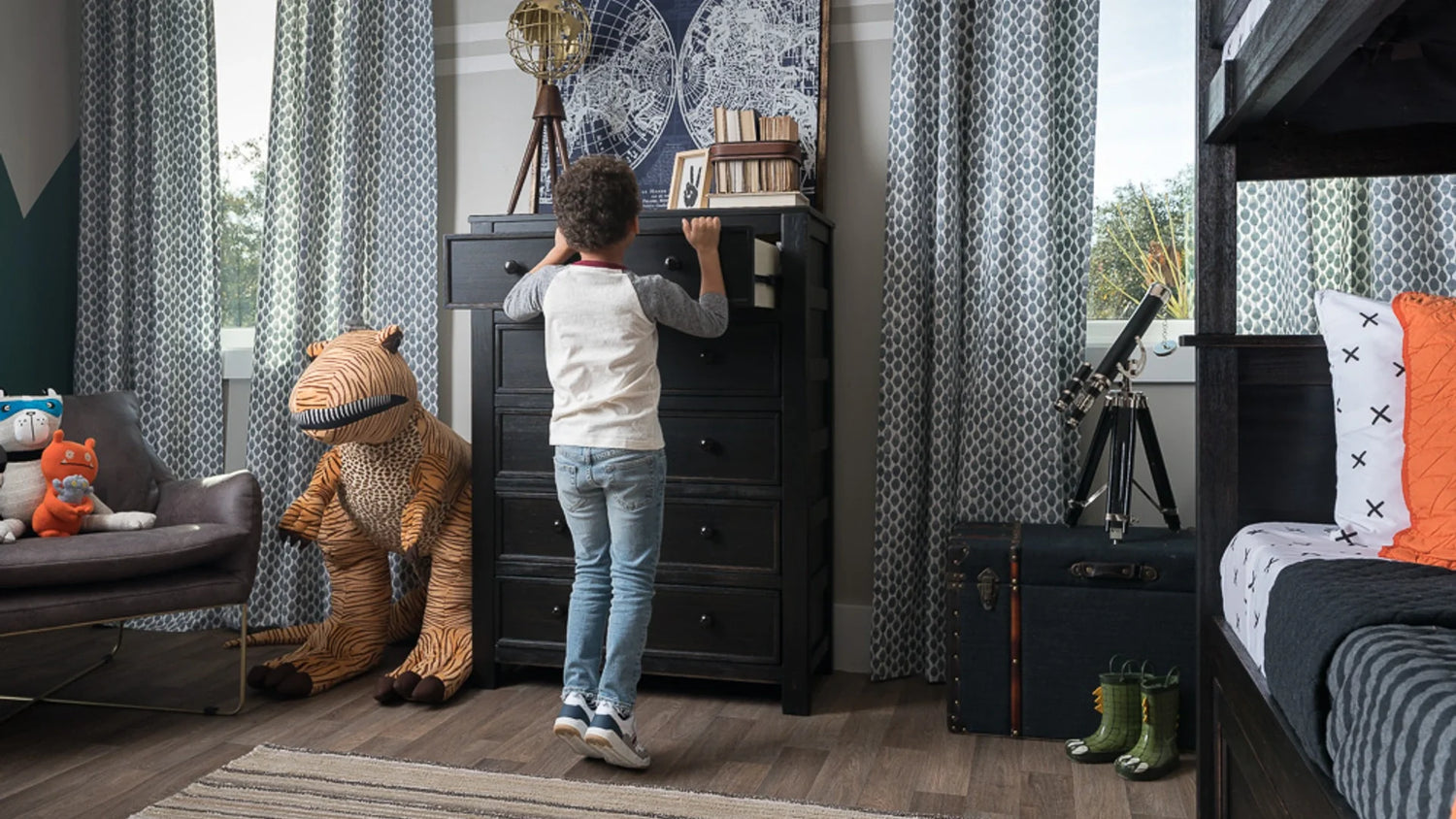 Remove items, such as toys and remote controls, from the top of dressers, TV’s and other larger furniture.