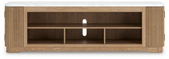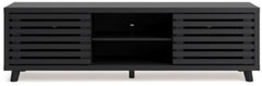The Rosswain TV stand is not just furniture—it’s a work of art. The cabinet door design is nothing short of a masterpiece. Its deep tribal texture and two-tone finish convey an intentional hand-carved feel creating a unique and attractive surface. Boasting an abundance of storage space and cord management, the large-scale silhouette accommodates flat screen TV’s up to 85 inches.